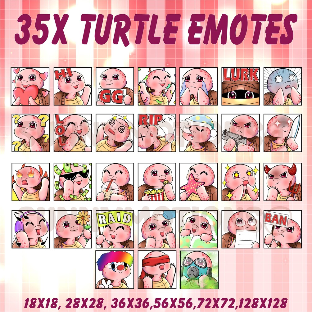 You'll get 35 Kawaii Pink Turtle Emotes