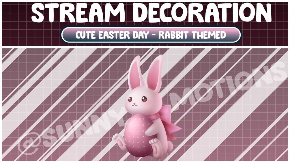 Looking for a way to make your Twitch stream stand out from the crowd? Look no further than this adorable Pink Bunny Hugging an Easter Egg Twitch Overlay Stream Decoration! Featuring a cute and kawaii rabbit animation, this overlay will add a touch of whimsy and fun to your gaming livestreams.